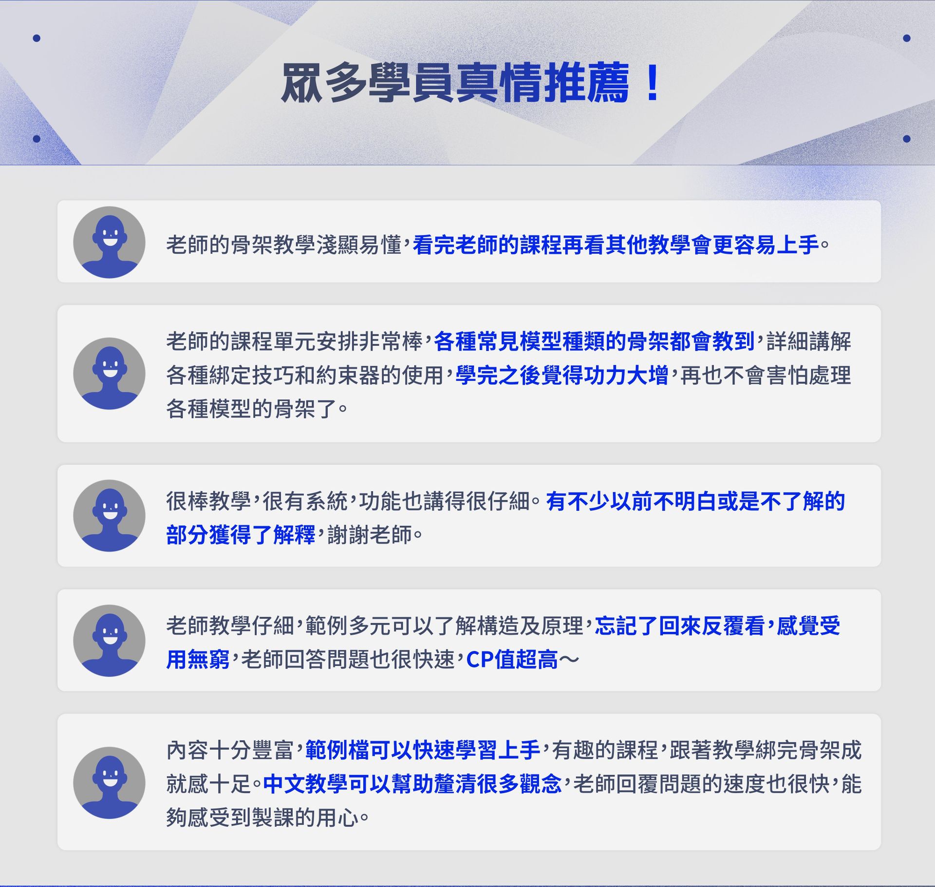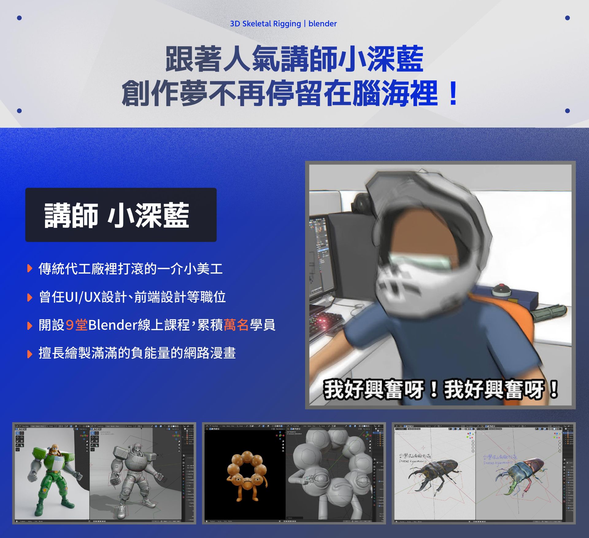 ·擅長使用Blender,開設多堂Blender線上課程,累積萬名學員