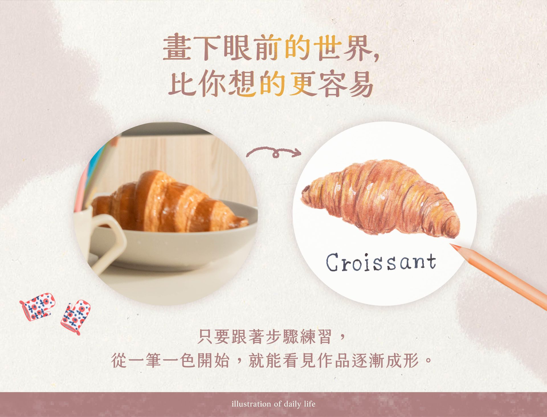 ➎學會結合色鉛筆與混合媒材,讓插畫更豐富,逐步建立個人創作風格。