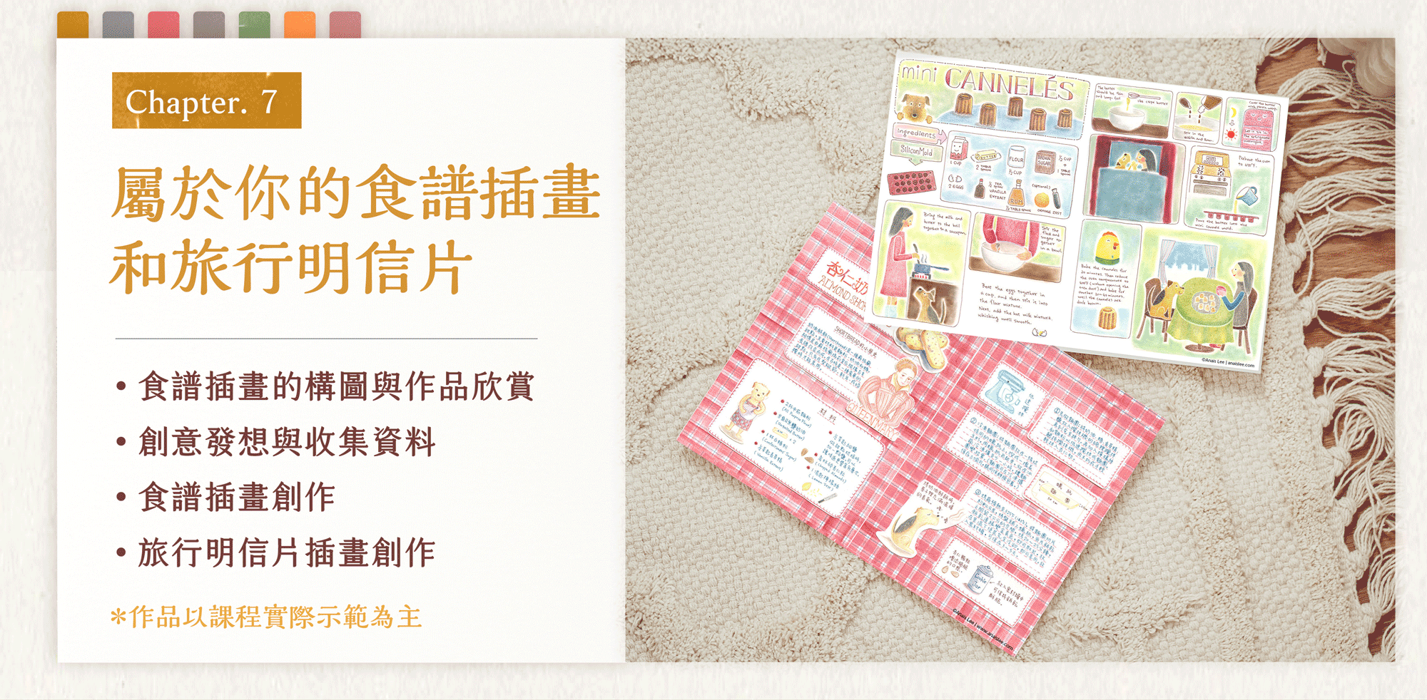 ➐把插畫實際應用於手帳紀錄、明信片與生活創作,留下屬於你的美味日常。