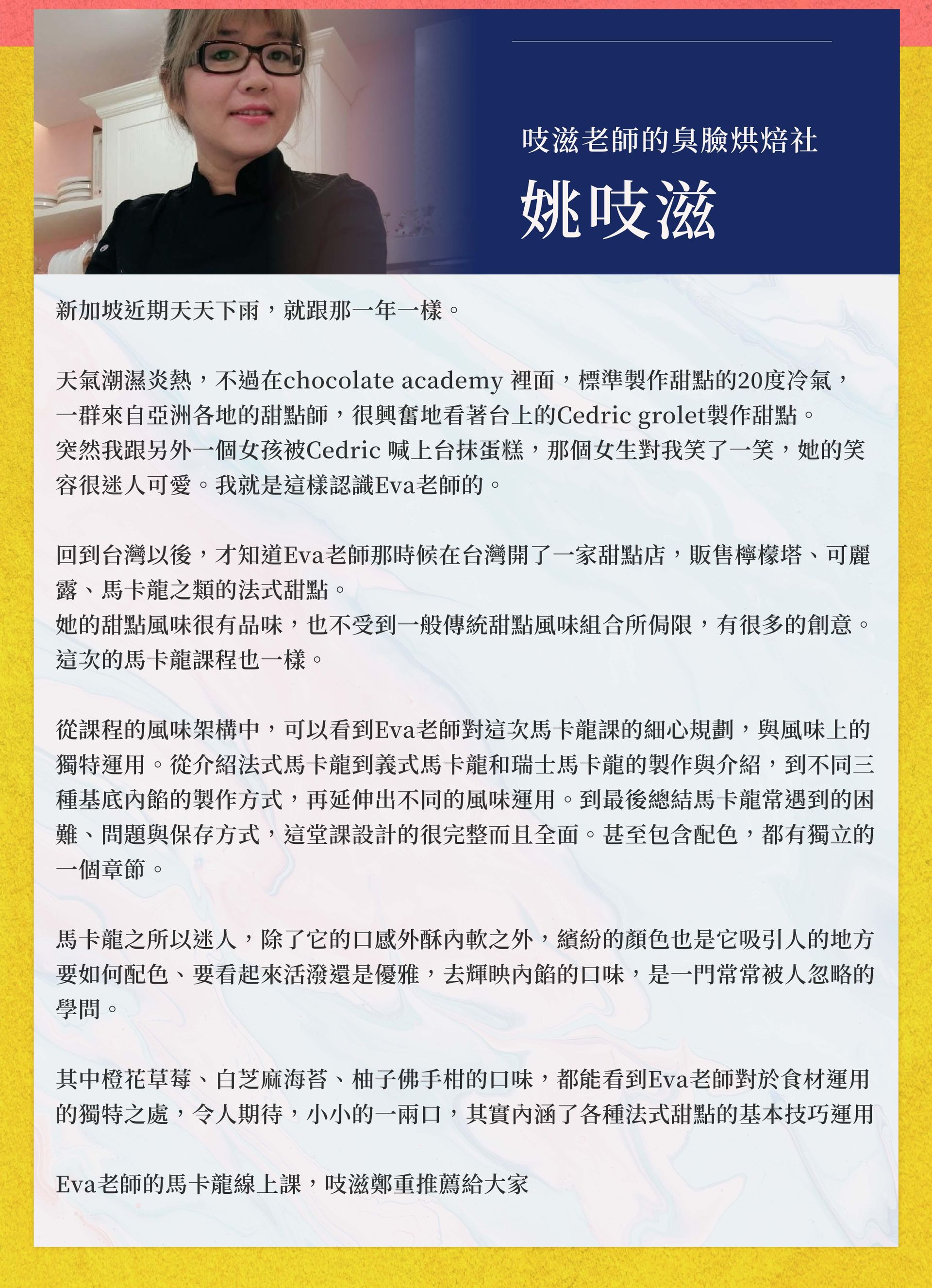一位不務正業半路出家到法國藍帶學藝的甜點師!