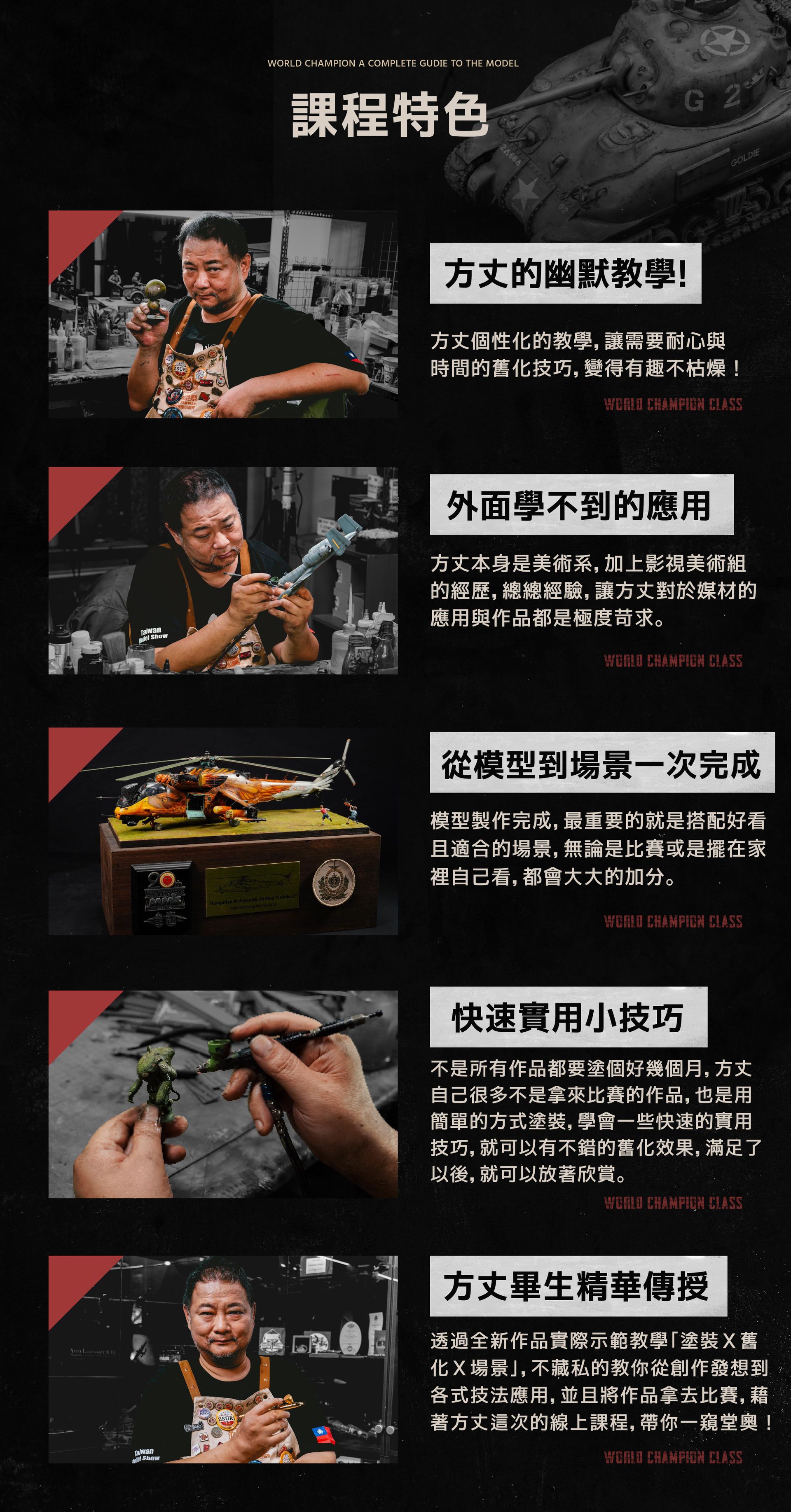 ❺ 方丈畢生精華傳授|透過全新作品實際示範教學「塗裝X舊化X場景」,不藏私的教你從創作發想到各式技法應用,並且將作品拿去比賽,藉著方丈這次的線上課程,帶你一窺堂奧!