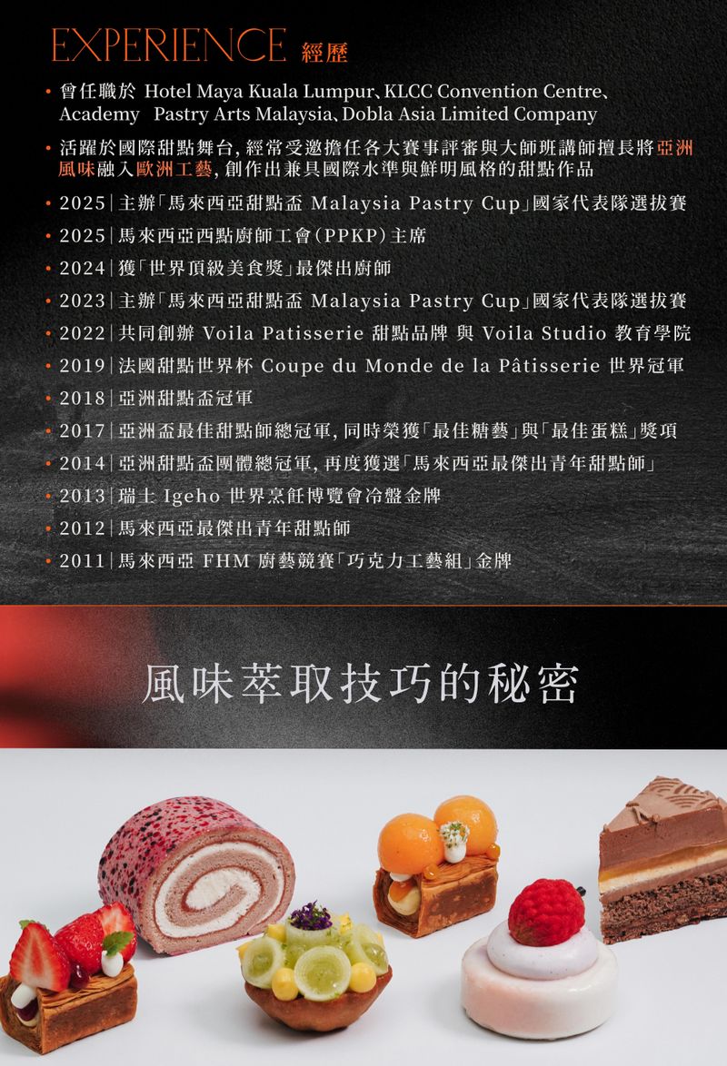 •2018年 亞洲西點大賽-Otto Tay代表馬來西亞隊,贏得冠軍。
