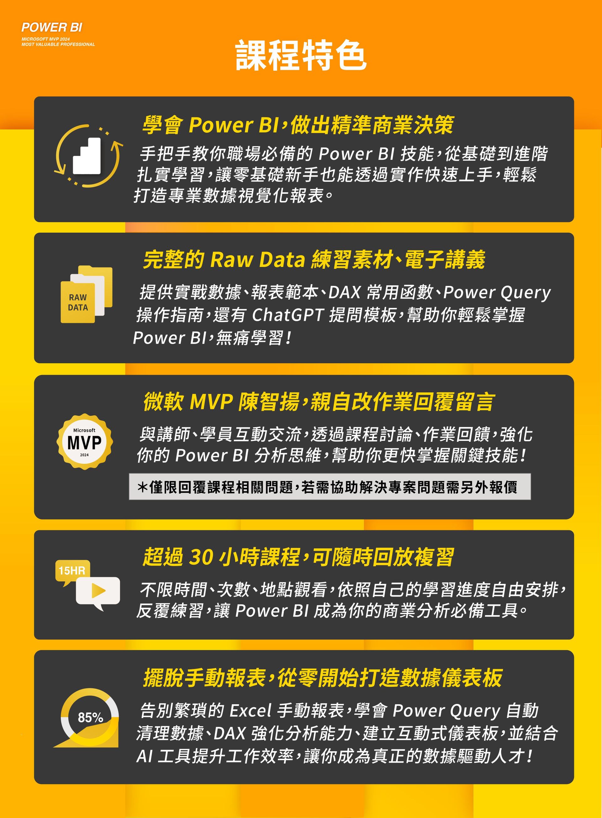 3.微軟 MVP 陳智揚,親自改作業回覆留言|與講師、學員互動交流,透過課程討論、作業回饋,強化你的 Power BI 分析思維,幫助你更快掌握關鍵技能!