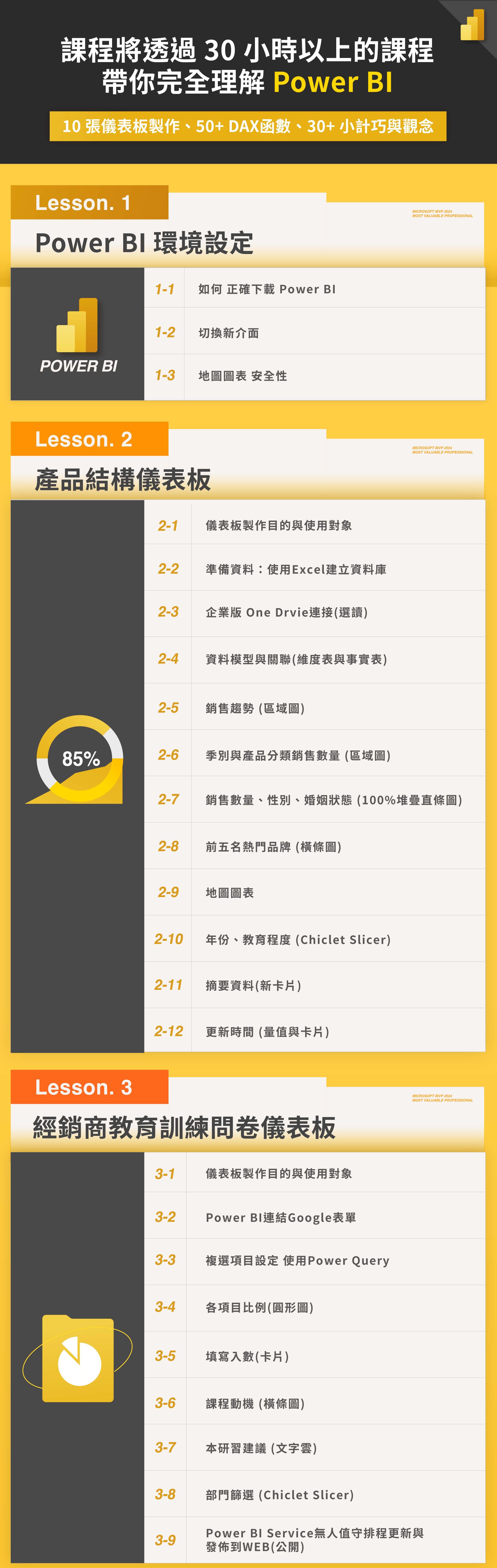 1.學會 Power BI,做出精準商業決策|手把手教你職場必備的 Power BI 技能,從基礎到進階扎實學習,讓零基礎新手也能透過實作快速上手,輕鬆打造專業數據視覺化報表。