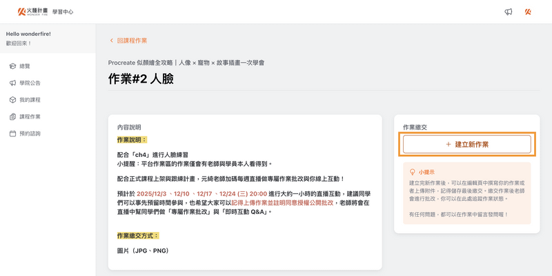 *如果是在繳交後發現有必須修改的地方,須請學員聯繫火種計畫客服:service.wonderfire@gmail.com,讓平台將作業狀態調整為「已退回」,學員方能進行作業修改。