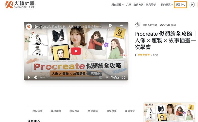 方法一、從學院首頁的導覽列表(電腦版的右上角),點選進入「學習中心」。