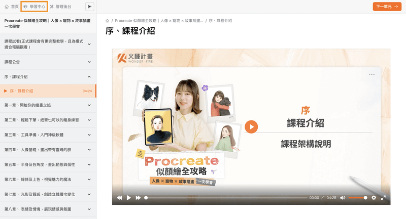 方法二、從課程觀看頁面的左上方列表,點選進入「學習中心」。