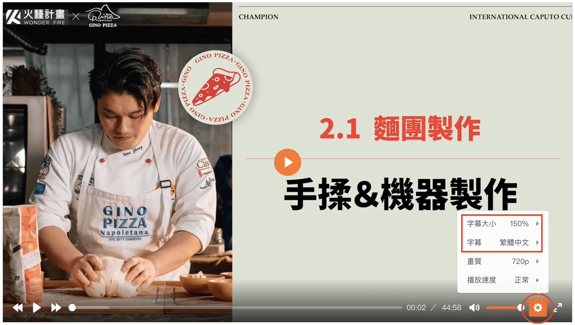 Step.1 :進入課程後,點擊影片右下角 設定 icon,可以看到「字幕大小」跟「字幕」選項